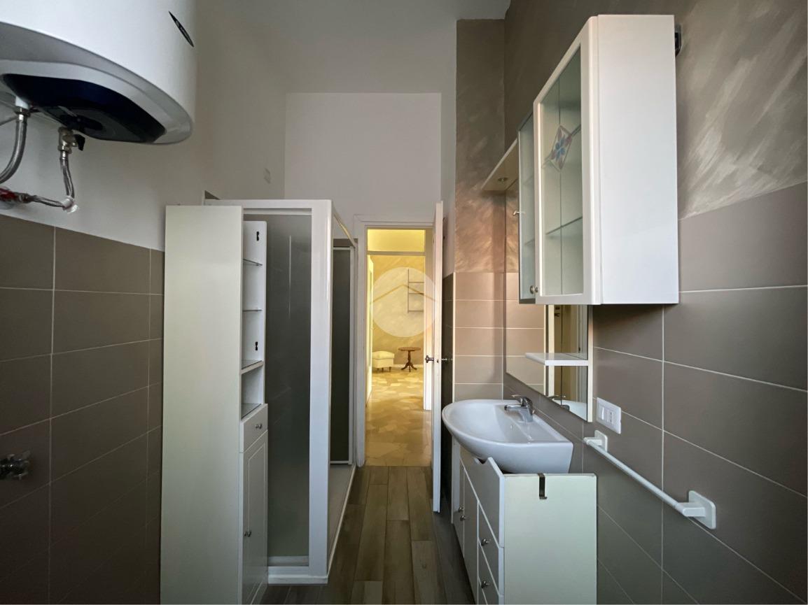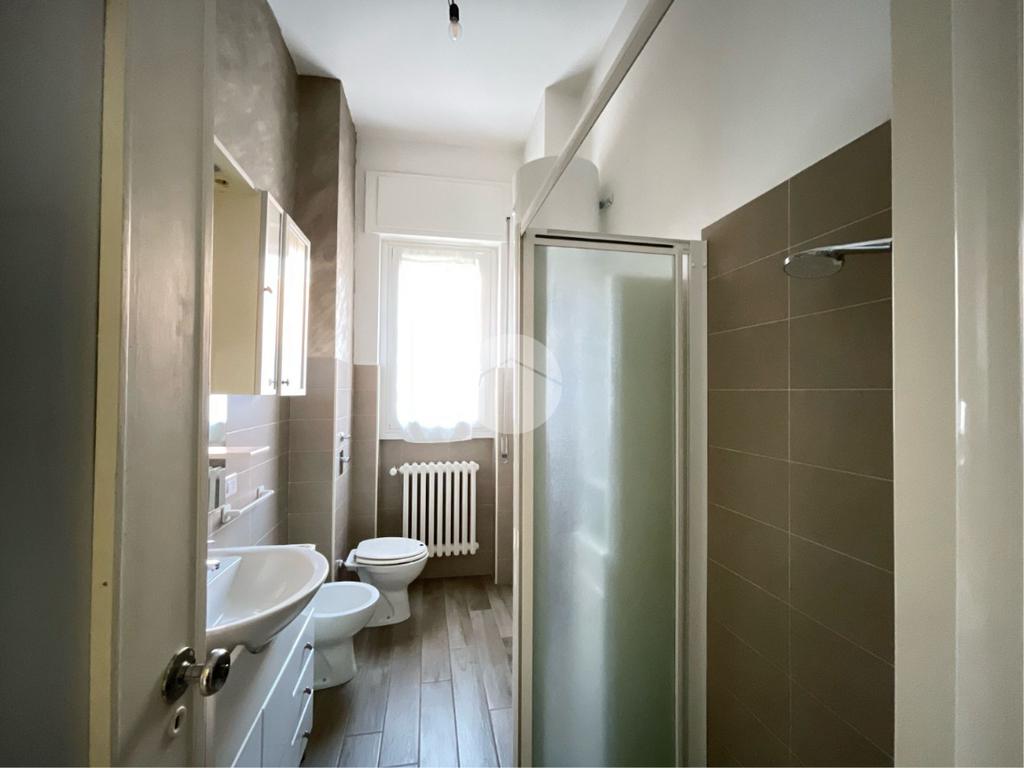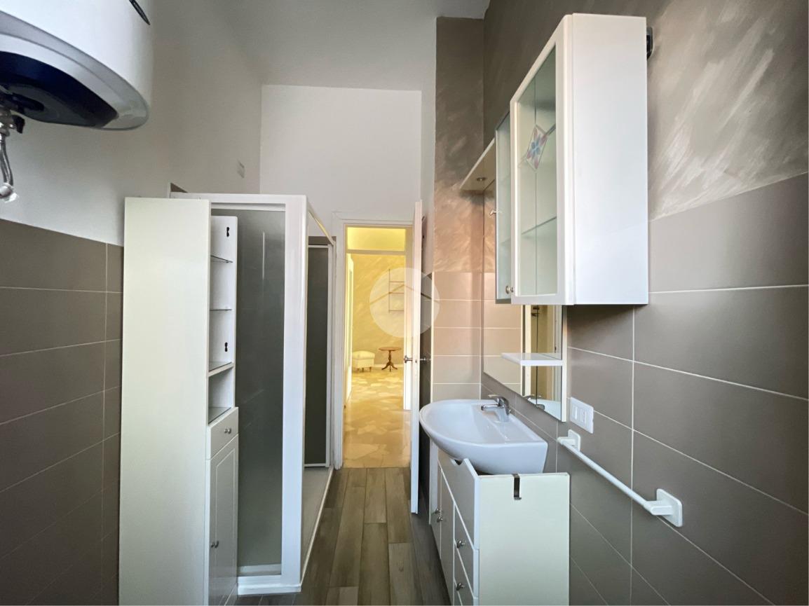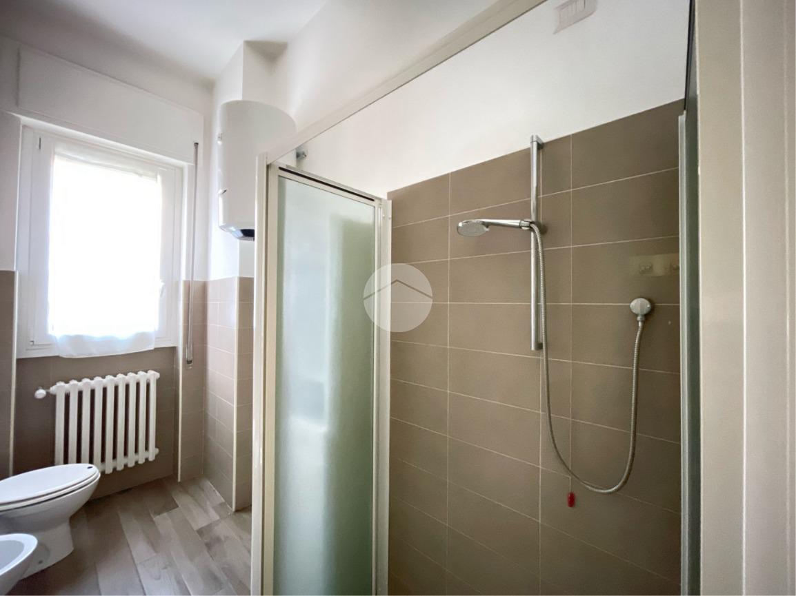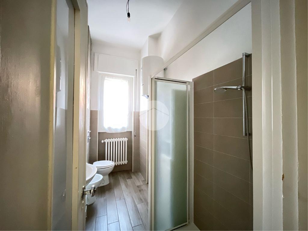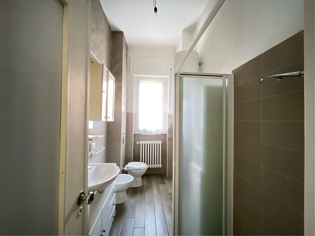 Entrando nell'appartamento a destra, abbiamo subito il bagno finestrato con doccia.