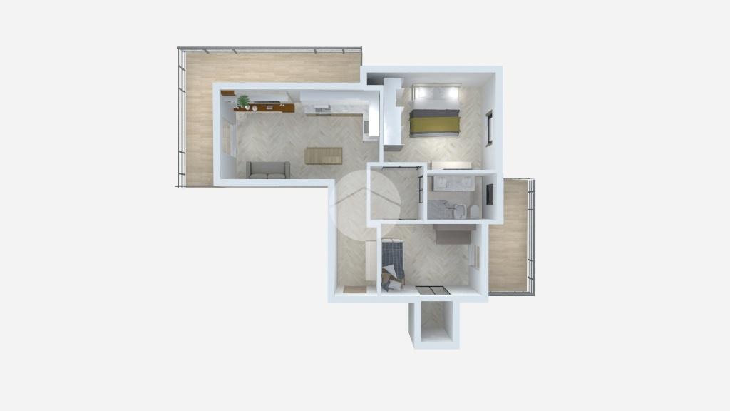Infine, abbiamo la zona giorno formata dal soggiorno sulla cucina a vista, la quale ci conduce al secondo balcone angolare ed è dotata anche di uno spli per l'aria condizionata.
