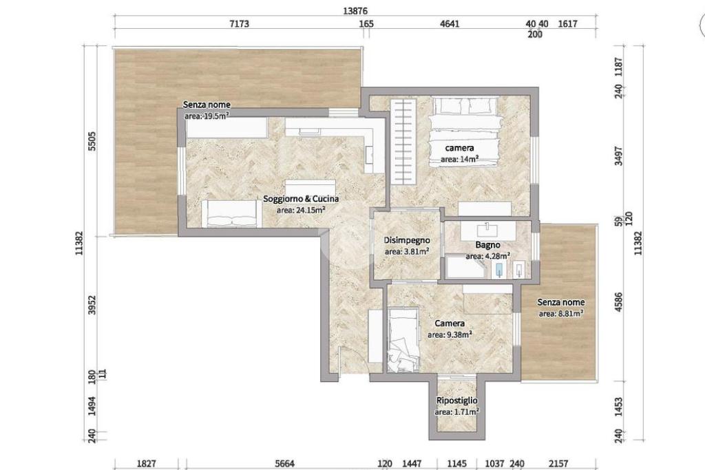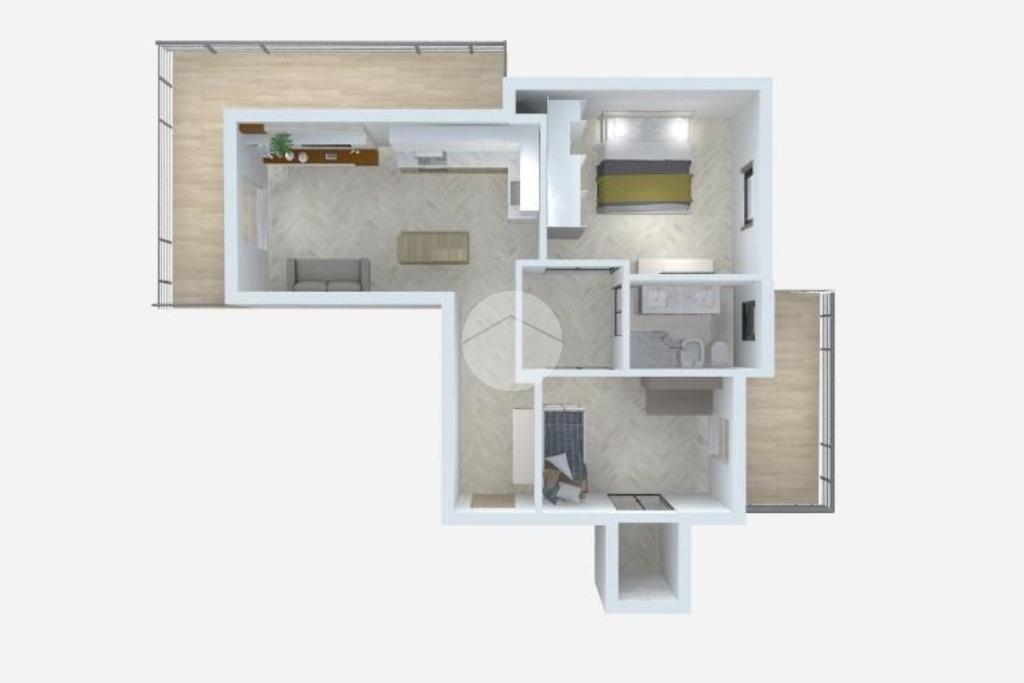 Nel disimpegno, abbiamo un ripostiglio in quota, da cui si può accedere attraverso le due camere da letto.