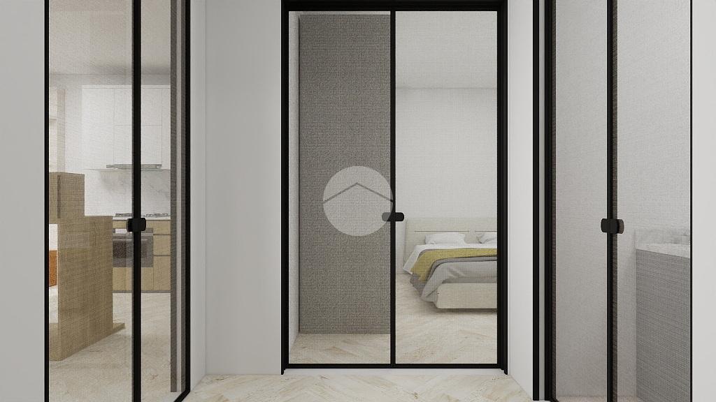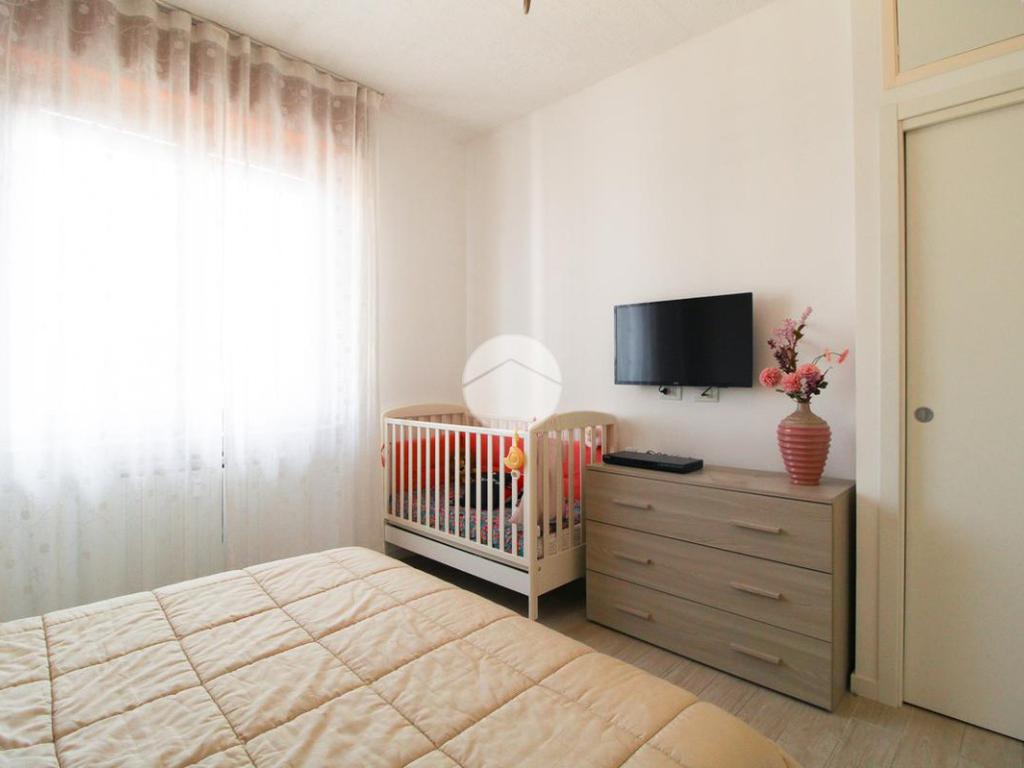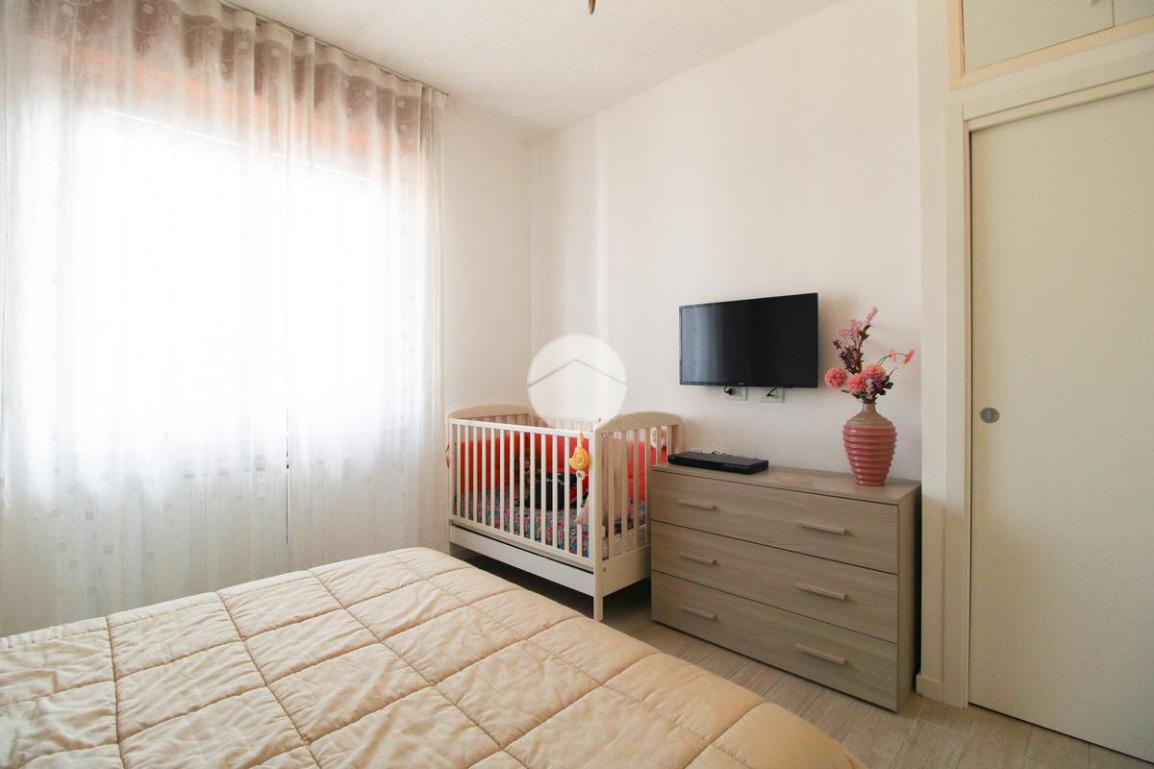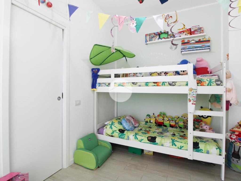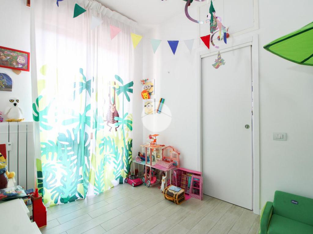Entrando, troviamo subito a destra la cameretta, fornita di cabina armadio e dalla quale è possibile accedere al primo balcone.