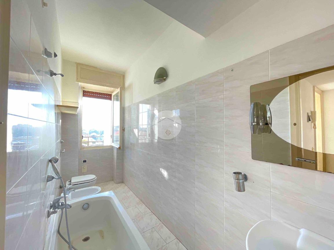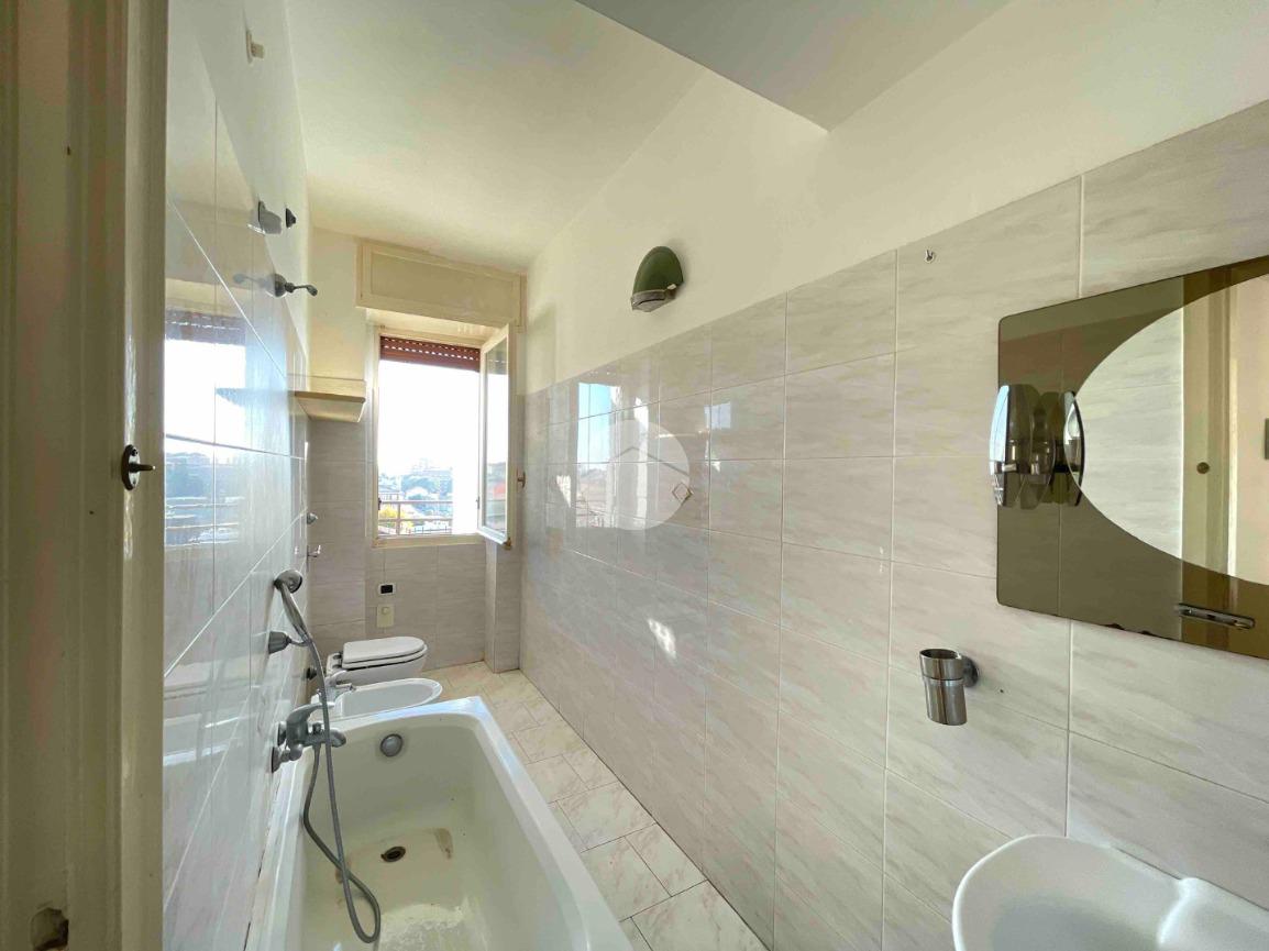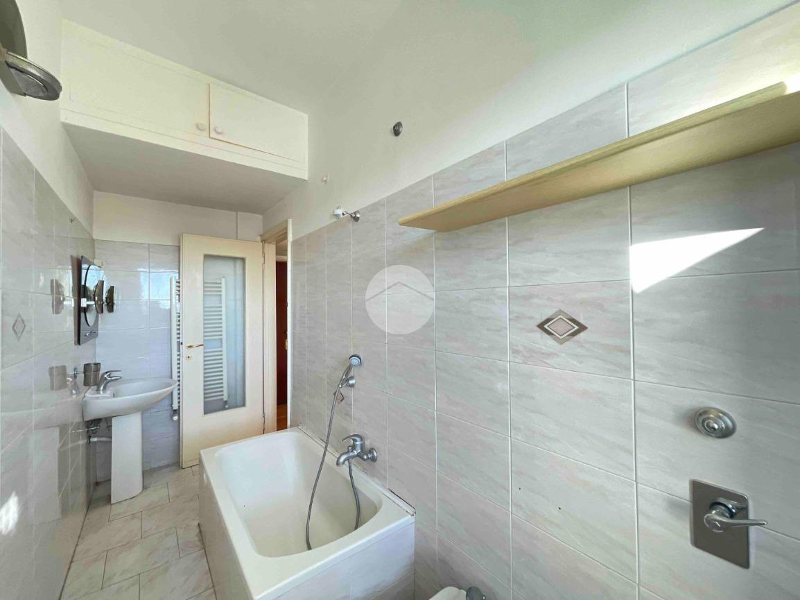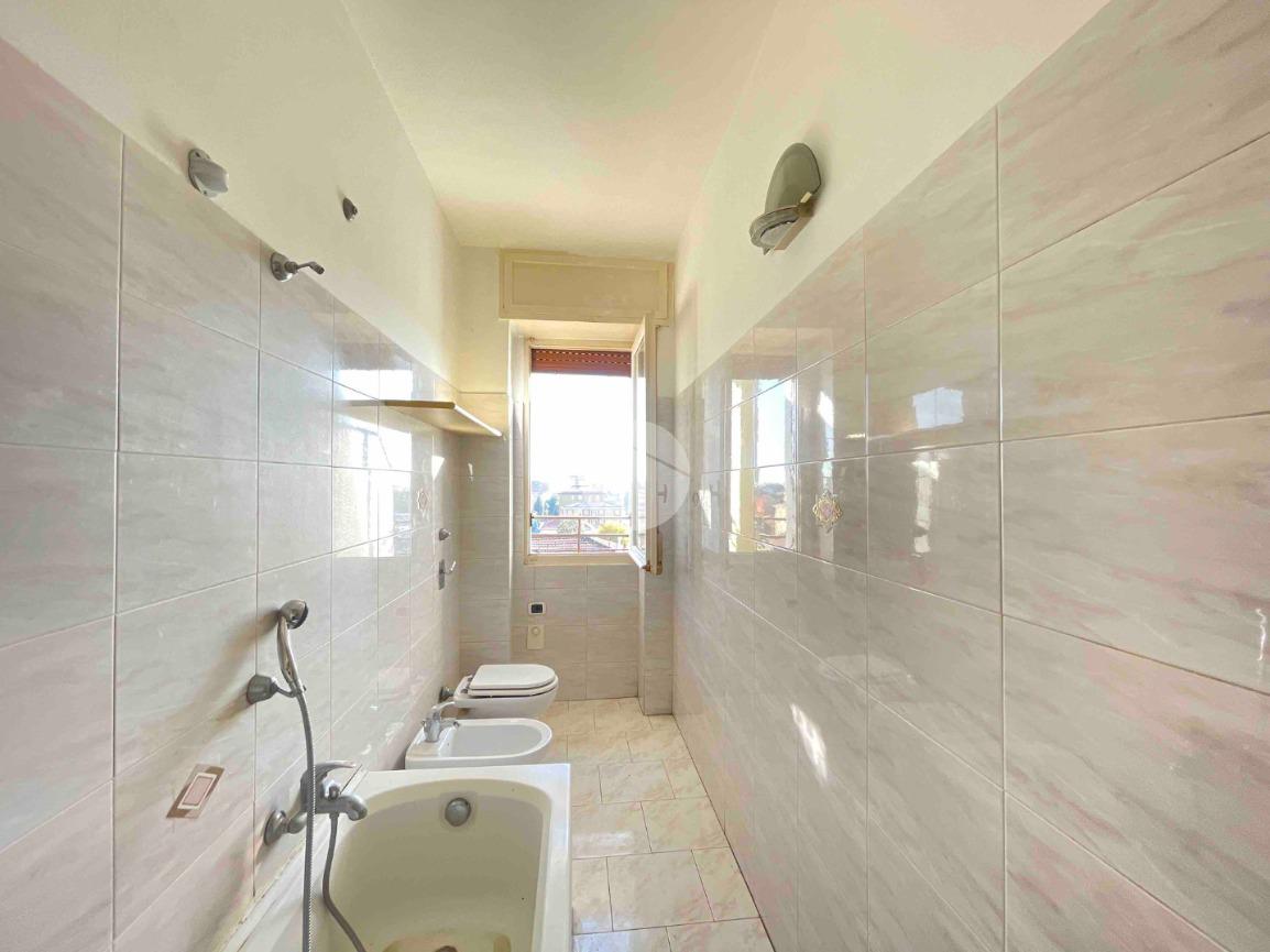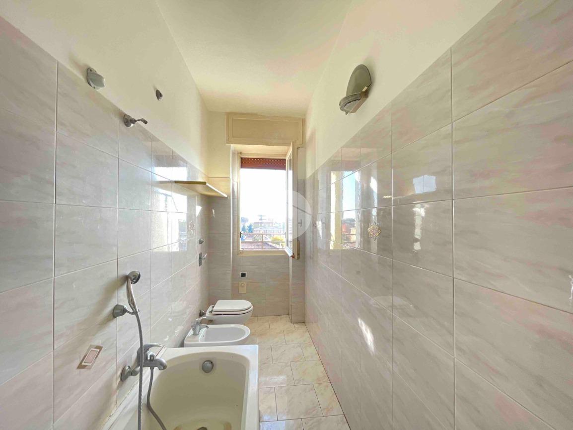 Partendo, da destra abbiamo il bagno finestrato, che ha una pavimentazione in ceramica ed è dotato di vasca.