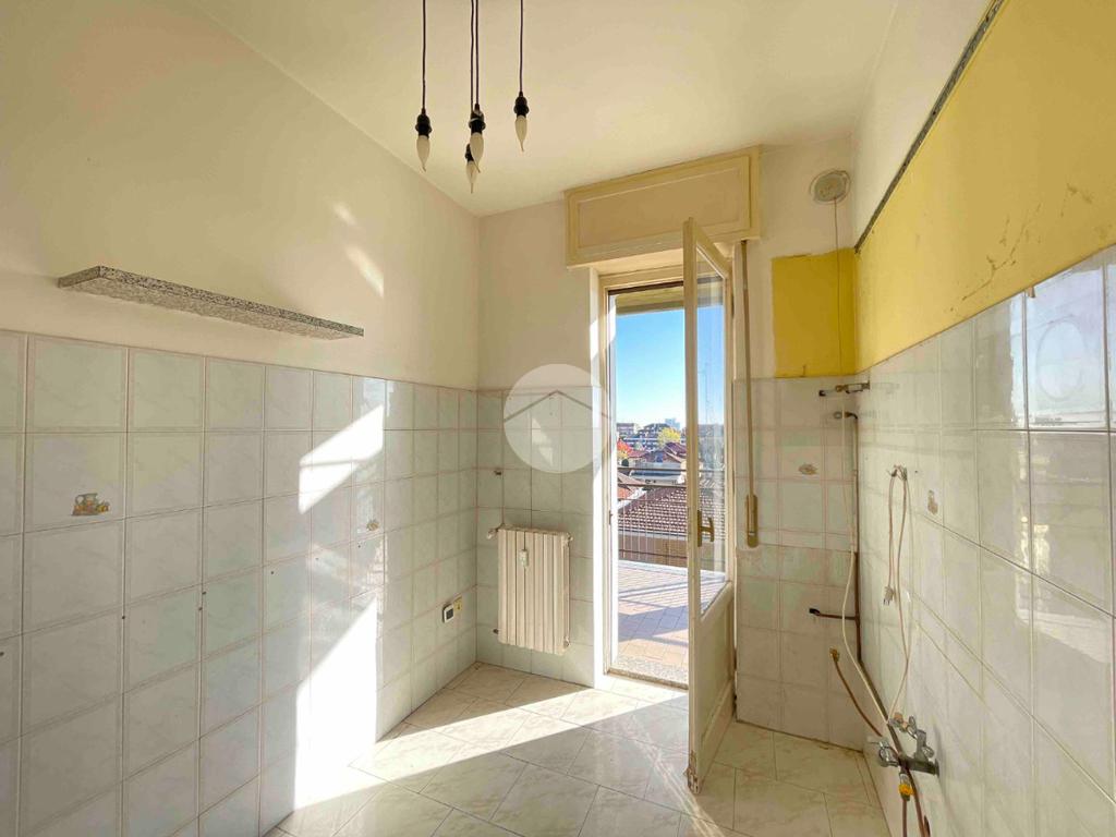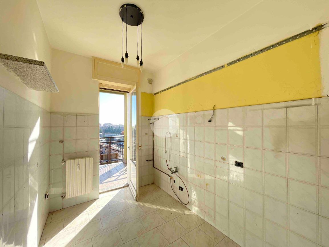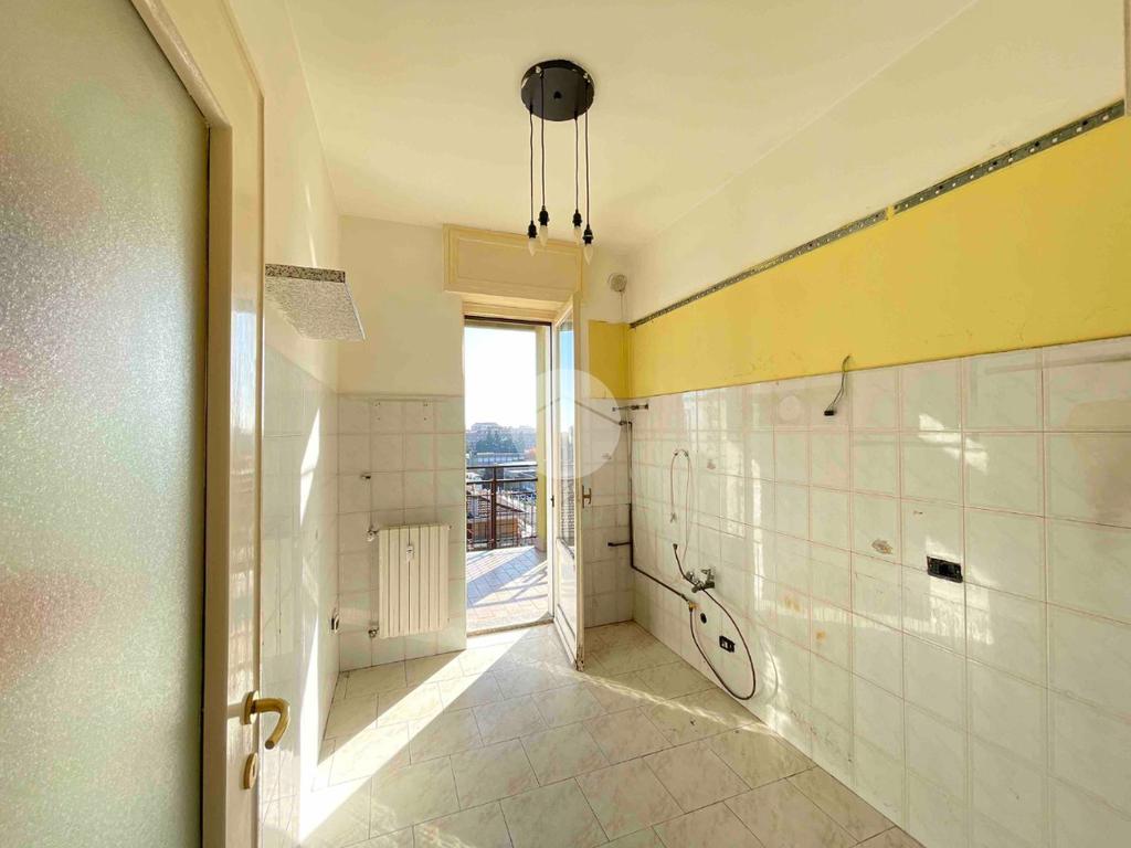 Successivamente, troviamo la cucina abitabile, dalla quale è possibile accedere all’ampio terrazzo. Anche in questo caso, la pavimentazione è in ceramica.