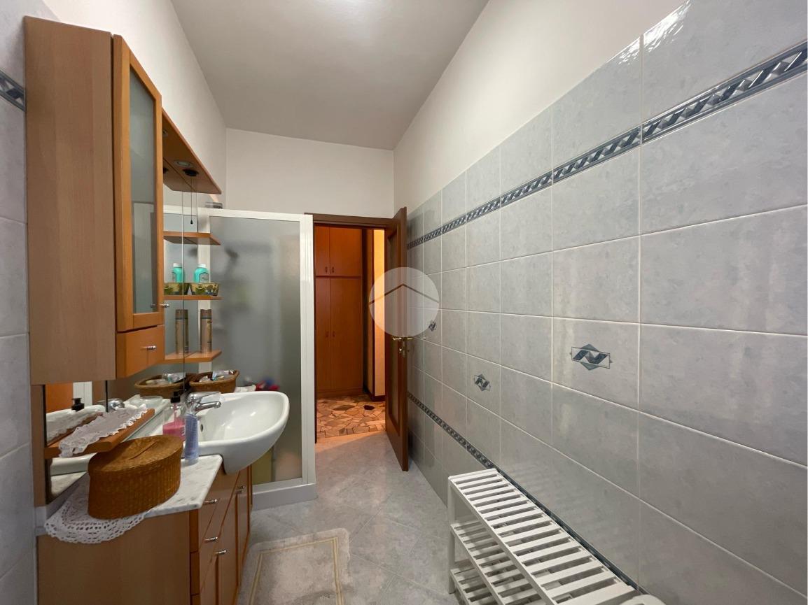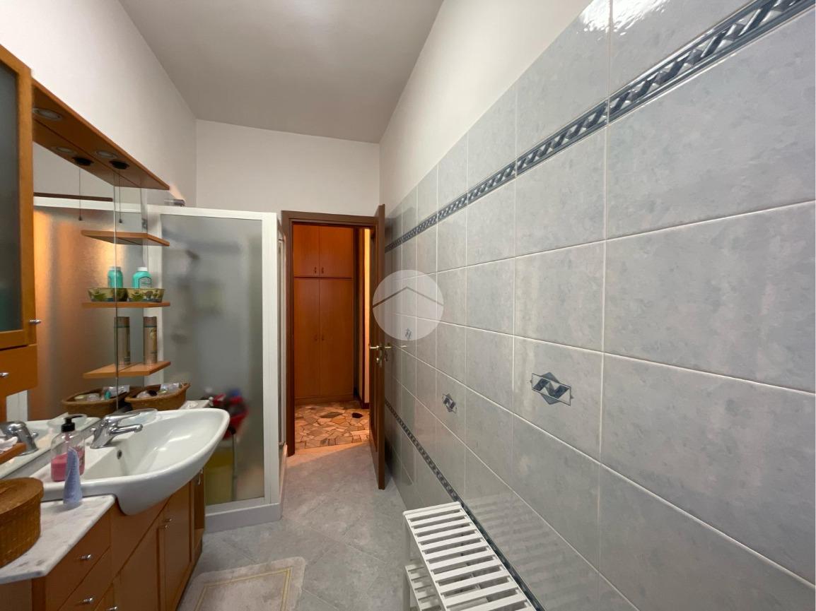 Proseguendo, incontriamo prima il bagno finestrato dotato di doccia, con una pavimentazione in ceramica e successivamente la cucina abitabile pavimentata con palladiana.