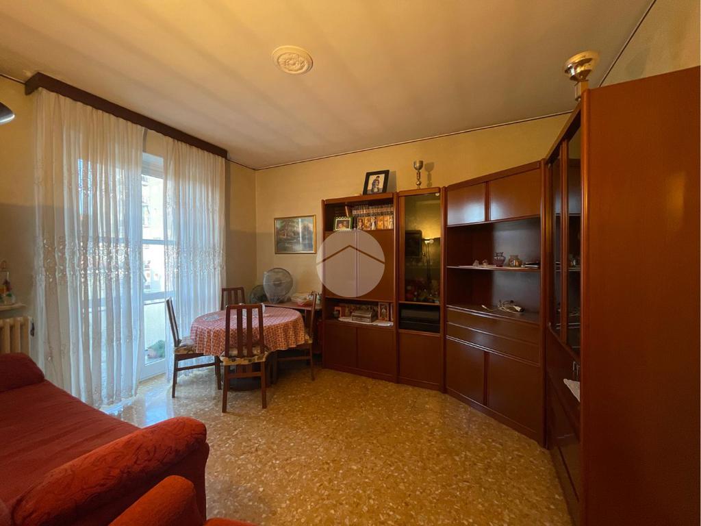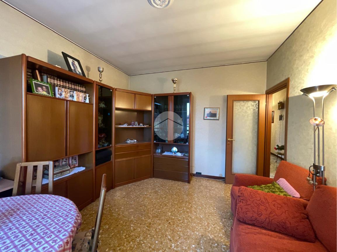 A sinistra troviamo il soggiorno, che si presenta con una pavimentazione in palladiana, dal quale è possibile accedere al balcone.